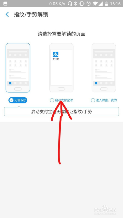 然后选择需要解锁的界面,这里点击第二个启动付出宝时