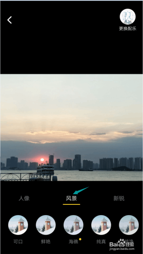 接着,等上传好了,点击界面最上方右侧的改换配乐,你可以改换软件默认的音乐或者音乐库中的音乐。