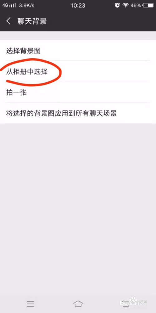 进入到聊天布景设置页面,按照本身的需要选择一种设置体例,例如我们选从相册中选择