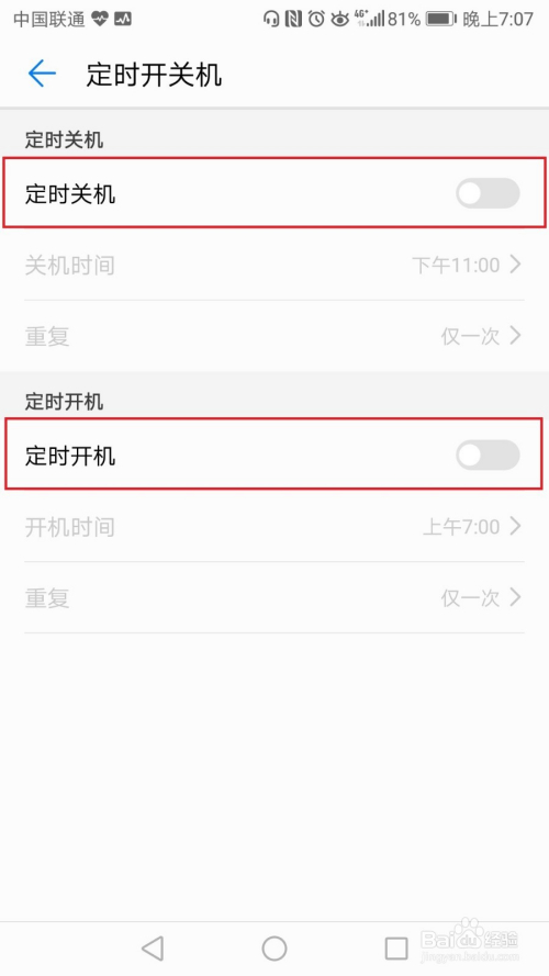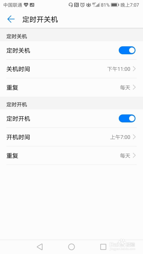 别离开启按时关机和按时开机后的滑动按钮,并设置时候;即可完当作主动开关机设置。
