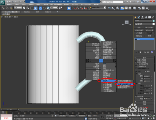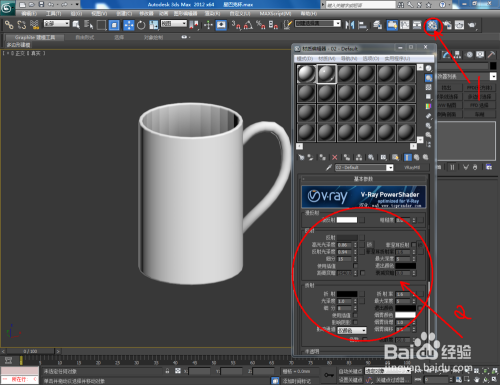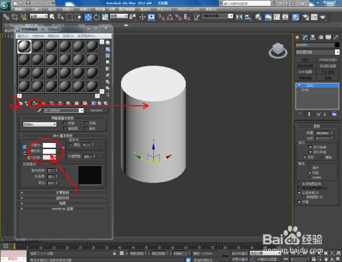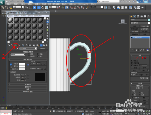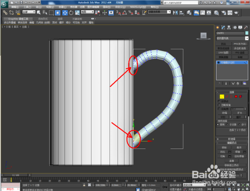 对把手的点进行调整(如图所示),调整完当作后,点击【材质编纂器】,同样附加给把手一个白色材质球;