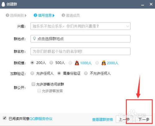按照本身的爱好填写好昵称、地址等等,填写完毕之后点击下一步: