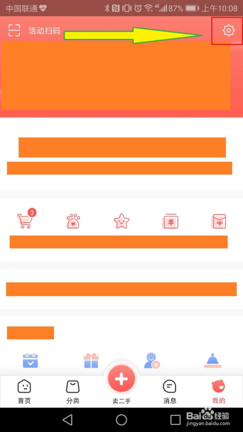 我的页面打开后,点击右上角的设置按钮;
