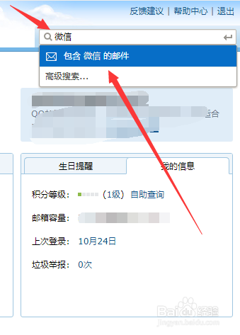 若是QQ邮箱邮件太多,可以在页面右上角搜索框输入【微信】并搜素