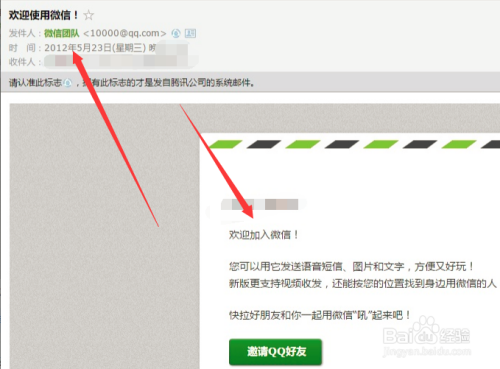 最后我们点击打开那封接待利用微信的邮件就可以看到本身微信注册时候啦