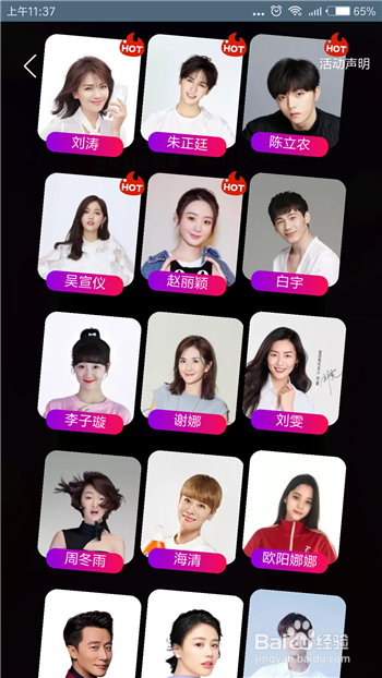 当然,和明星豁拳是可以选择明星的,下拉活动的界面,在这里有良多的明星,找到本身喜好的明星并点击。
