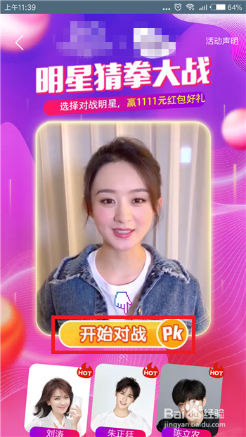选择好明星后就可以起头PK豁拳了,点击【起头对战】选项。