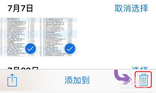 首先就是把手机相册中的那些不太主要或者已经备份到iCloud的照片删除,点击选中照片,然后在页面右下角点击垃圾桶的图标即可;