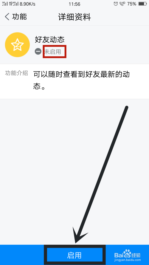 在功能选项中,点击进入已封闭的功能-老友动态,如图所示
