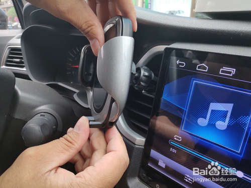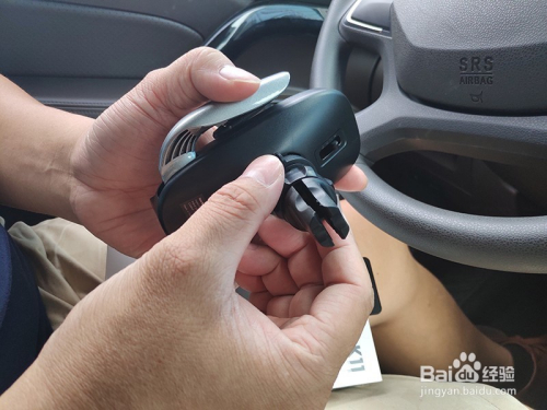 把充电器与风口夹组装好了之后,接线来需要将充电器固定在车子的出风口处。风口夹从头至尾端的夹子采用的事柔韧性很强的硅胶材质,所以夹上去的时辰不消担忧划伤车子。