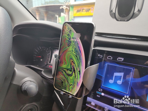 接下来就可以将手机放上充电器的支架上起头充电,K11无线充支架双方的夹臂可以自由伸缩,按照手机打来来调整,把手机紧紧固定住。