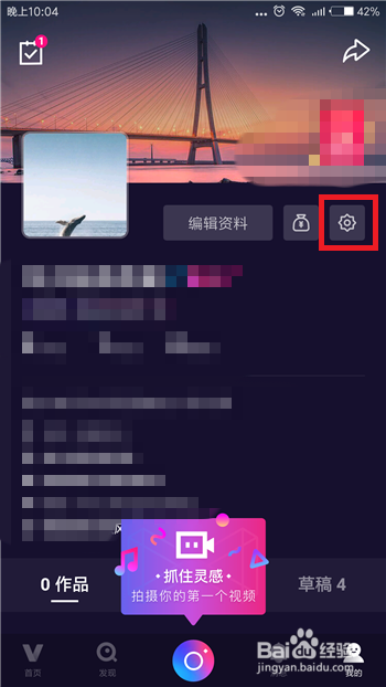 点击后会打开微视的小我中间界面,找到【设置】按钮并点击,如图所示。