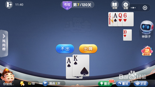 妙算子打出一张年夜王,接着打出一张6,然后我打出一张A就过关了。