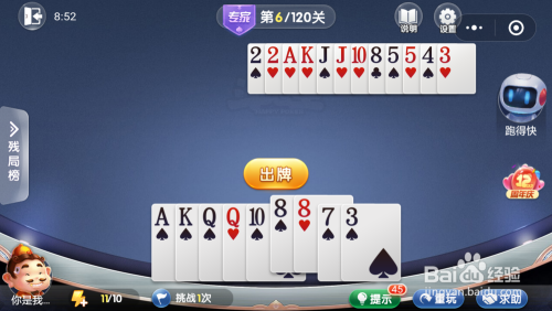 第6关先打出一对8,跑得快打出一对J。