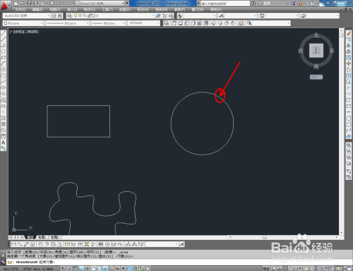 打开AutoCAD 2013,点击【多段线东西】,在作图区域画出尺寸为“3000*1500mm”的矩形;点击【圆形东西】,画出一个半径为1500mm的圆;点击【样条曲线东西】,同样在作图区域画出一个异形图案;