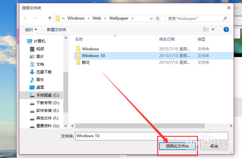 选择好幻灯片放映模式之后,点击选择“浏览”按钮,选择存有桌面布景图片的文件夹,然后点击“选择文件夹”即可。