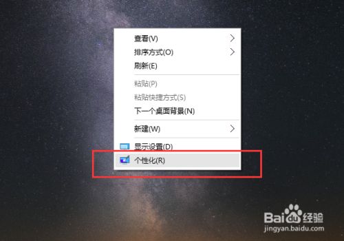 Win10系统的个性化菜单设置,可以考虑在桌面上击右键,选择“个性化”菜单,也可以进入桌面布景图片设置页面。