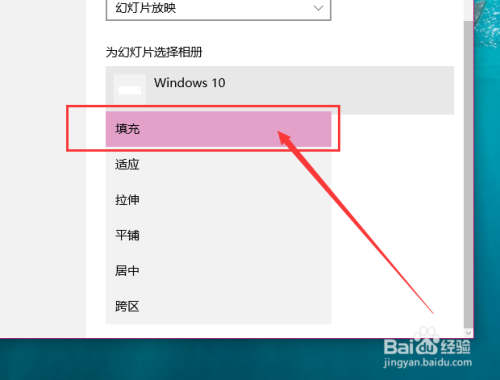接下来,需要选择桌面布景图片的展示体例,建议不要更改默认的"填充"模式,因为只有在填充模式下才可以较好地切换桌面布景图片。