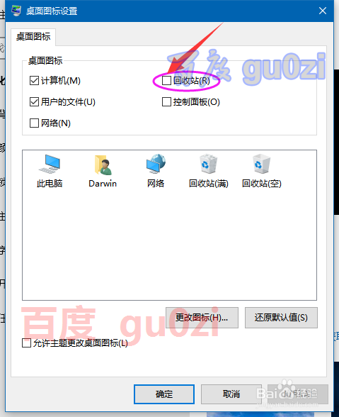 在这里就可以找到桌面图标的设置了,可以看到桌面图标中的 收受接管站前的勾没去失落了,