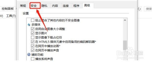 在Internet选项中找到上面导航栏中的高级按钮
