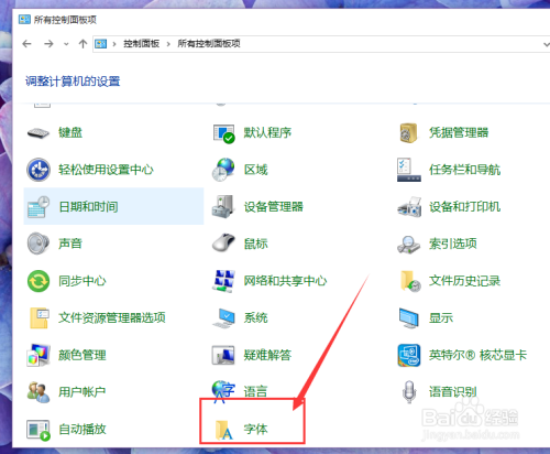 在年夜图标类别下,我们只需要点击节制面板本家儿页面中的“字体”选项,然后打开Windows字体大小设置页面 。