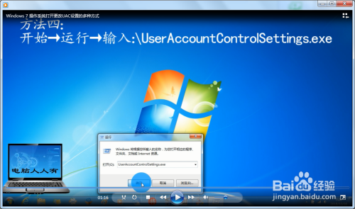 起头→节制面板→用户账户→更改用户账户设置→也能打开账户节制。