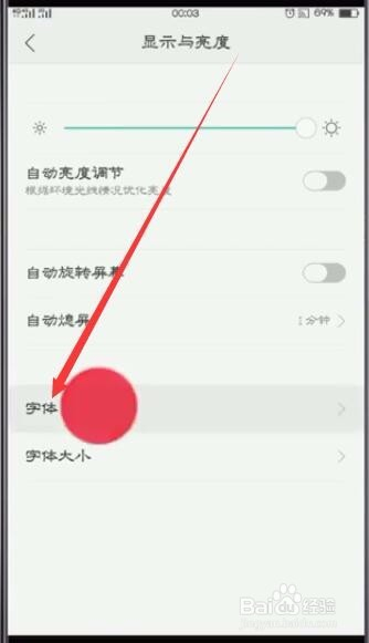 返回【显示与亮度】界面,点击字体大小;