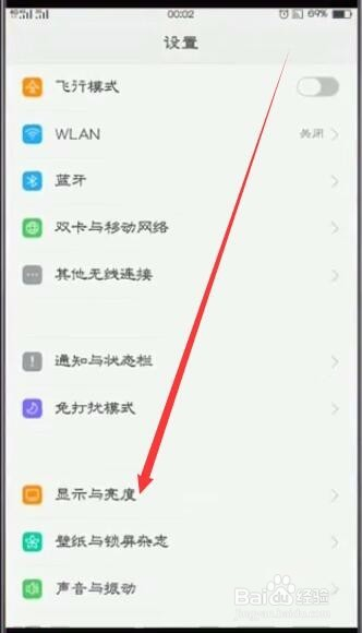 鄙人拉菜单中找到显示与亮度,并点击;