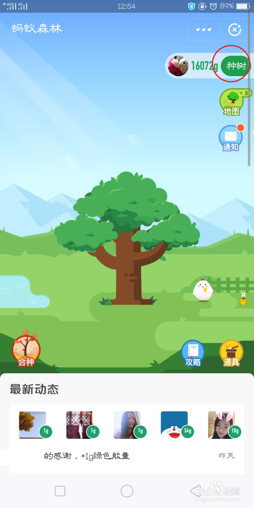 进入蚂蚁丛林后点击‘种树’(如图);