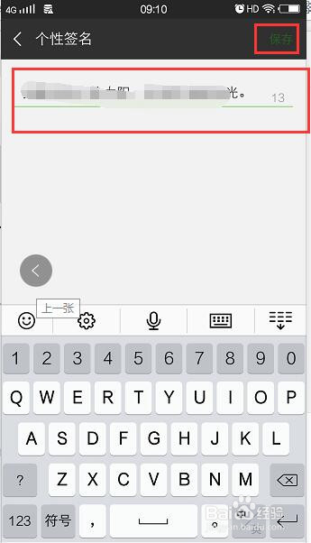 点击之后会呈现点窜个性签名的处所,进行点窜,修完之后点击保留: