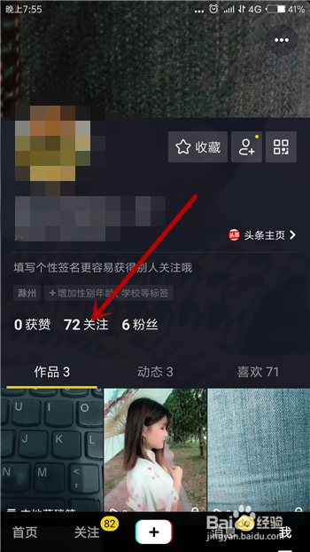 如许就可以打开抖音的小我本家儿页了,若是所示的位置可以看到存眷数,点击存眷数目。