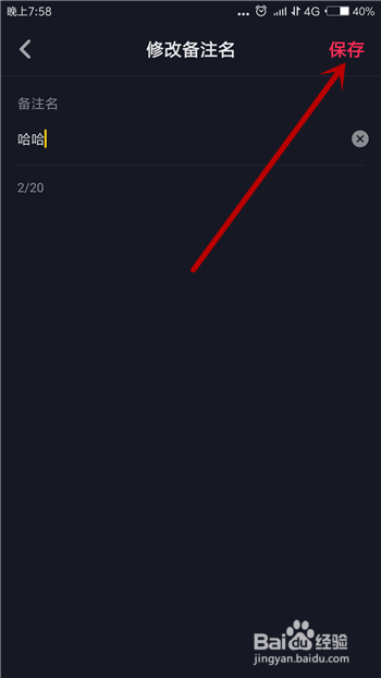 在备注名界面中输入好备注的信息后点击右上角的【保留】选项,如许就设置好备注名了。