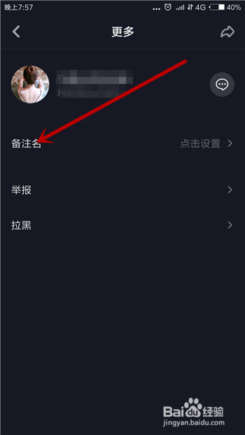 然后在接下来的界面中就可以看到【备注名】选项了,点击起头备注。