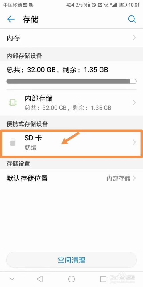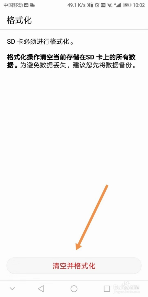 点击”SD卡“项可以查看SD卡空间残剩几多,若是确定sd卡中的内容不再需要,可以点击”格局化“