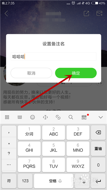 然后我们就可以给这个老友设置备注名了,设置好后点击【确定】。