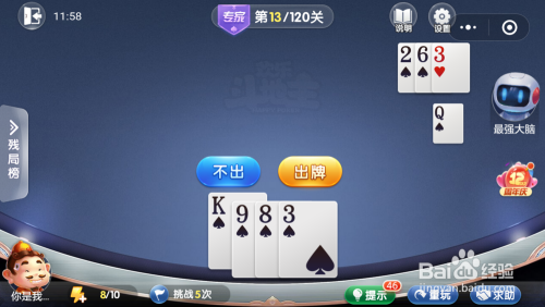 最壮大脑打出一张3,我打出一张9,接着打出一张8,然后打出一张3就过关了。