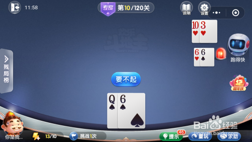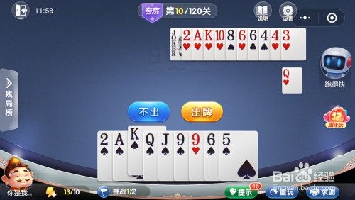 我打出一张10,跑得快打出一张Q。