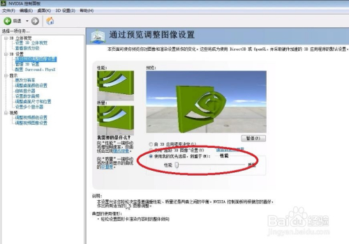 就是显卡设置为高机能模式,如n卡,在设置界面点经由过程预览调整图像质量