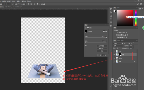 在显示并选中人物图层,选择钢笔东西,将人物年夜致用钢笔东西进行抠图抠出来并生当作一个选区;然后单击图层下方的蒙版东西添加一个蒙版。