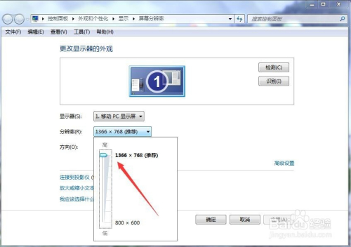 分辩率可以选择下拉选择,一般选择保举设置就可以。
