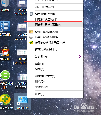 当我们在桌面上建立了一个天主模式的快捷体例之后,对该快捷体例击右键,就可以将其固定在起头屏幕上,如下图所示,在右键菜单中选择“固定到起头屏幕”即可。