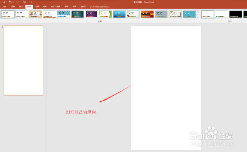 选择设计菜单栏,在设计菜单栏中选择设置幻灯片大小,在弹出的设置幻灯片大小的窗口中,选择幻灯片的偏向为纵标的目的,将幻灯片酿成纵标的目的排版的幻灯片。