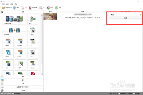 在其下拉的菜单选择需要转换的视频格局,软件主动进入下一步。不要其他的操作。