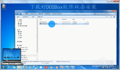 先下载好DOSBox(只有32位的法式)→双击安装。