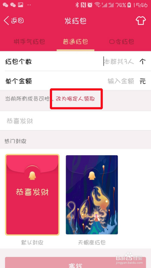 来到发红包页面,我们再点击【改当作指定人领取】