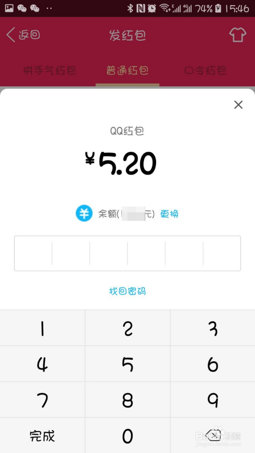 在弹出的窗口中,我们输入密码。就可以看到红包已经发送在群里了。