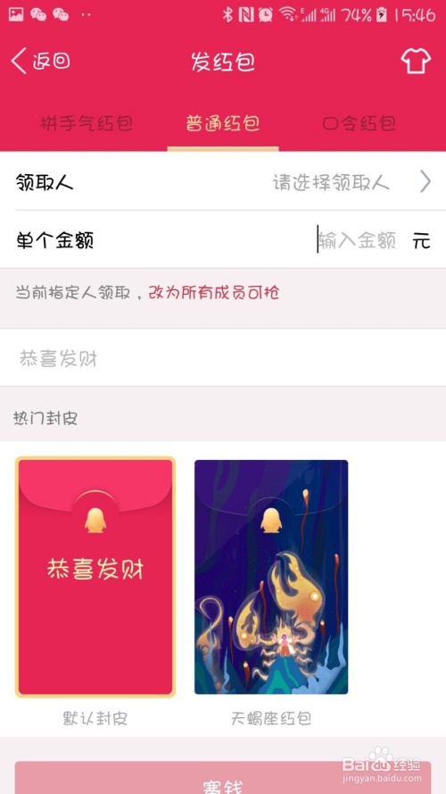 在弹出的选项中选择【通俗红包】