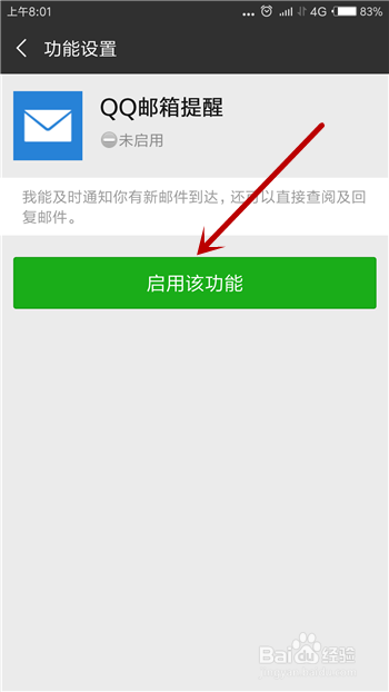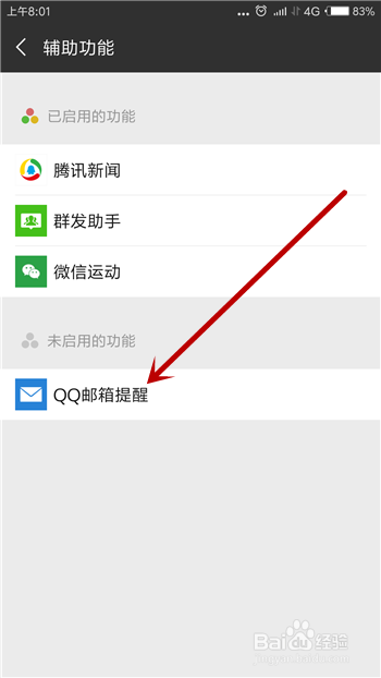 然后在辅助功能中就能看到【QQ邮箱提醒】,今朝是未启用的,点击一下。