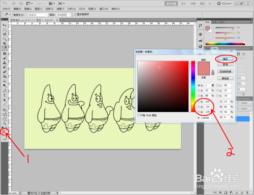 点击【新建图层】图标新建一个新图层。选中布景图层后,点击【魔棒东西】,按住【shift】键拔取所有皮肤部门形当作选区。将前景色设置为皮肤颜色后,点击【填充东西】,选中新建的图层进行颜色填充(如图所示);