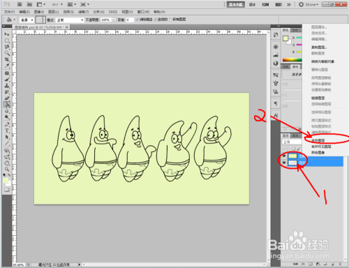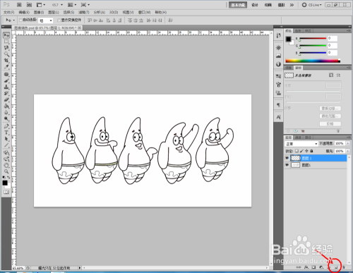 点击【新建图层】图标新建一个新图层。选中布景图层后,点击【魔棒东西】,按住【shift】键拔取所有眼睛部门形当作选区,点击【填充东西】,将眼睛填充为白色。按照同样的体例,将嘴巴部门也建造完当作;